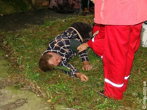 Через декілька хвилин приїхала швидка допомога. Оглянули чоловіка та забрали його до лікарні.