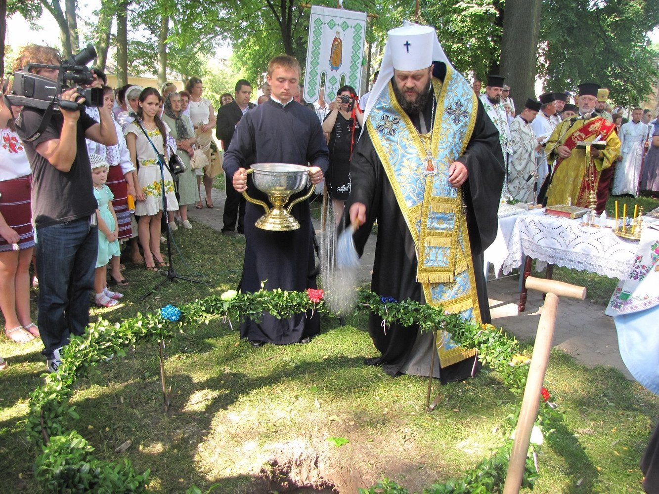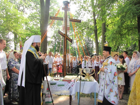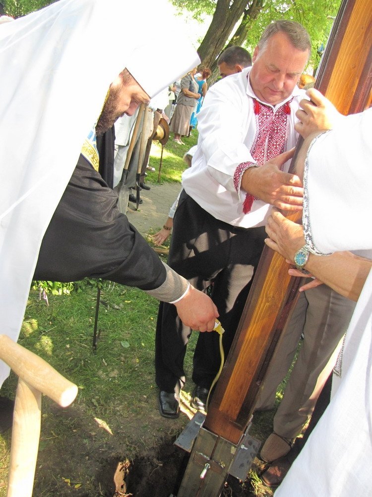 Митрополит Луцький і Волинський Михаїл освятив хрест у Володимирі, на місці, де новостворена парафія будуватиме храм Мучениць Віри, Надії, Любові та Софії, що на вулиці Драгоманова, 5, біля історичного музею.