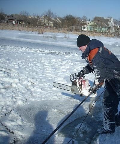 За допомоги бензопил рятувальники розрізали льодові затори, а баграми допомагали кризі спливати вниз за течією.
