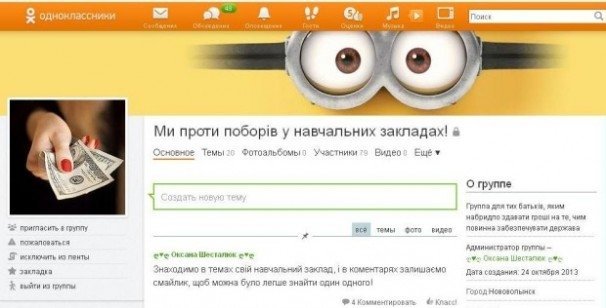 «Багато батьків вважають добровільні внески примусовими, – розповідає пані Оксана. – Більшість здає їх з однієї причини – усі так роблять. Не бажаєш бути «білою вороною», хочеш, аби твою дитину не гнобили – теж здавай. Щоб зламати цей стадний інстинкт ми створили групу в соціальній мережі «Однокласники». Вона називається «Ми проти поборів у навчальних закладах!».