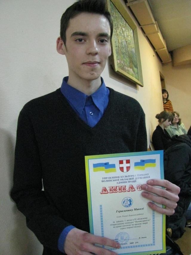 Переможцеві «Неповторності» 18 років, навчається він на першому курсі Києво-Могилянської Академії, – розповів юнак. Микола Герасимюк зізнався, що пише вірші ще з дев’яти років, але, за його словами, перші спроби були примітивними, римованими.