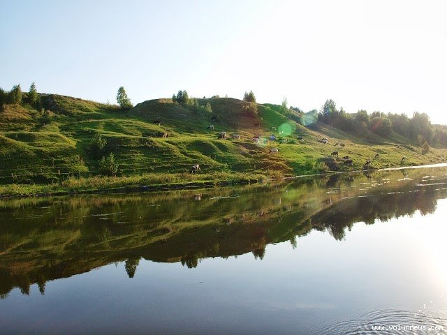 Другого дня наш маршрут пролягав від села Маринин до села Соснове. Правда, погода зіпсувалась: почався дощ. Але наш командний дух не зламають ніякі погодні умови - всі одноголосно вирішили продовжувати сплав. На цьому відрізку маршруту розпочалась так звана «надслучанська швейцарія» - зелені гори, на яких паслись корови.