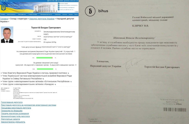 Народний депутат від партії «Слуга народу» Богдан Торохтій попросив у мера Києва Віталія Кличка 8 квартир в столиці для своїх помічників.