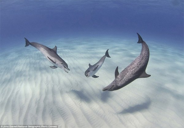 Ці три атлантичні плямисті дельфіни поводилися грайливо упродовж кількох хвилин, так що Джон Гаскелл зумів підплисти і приєднатися до них