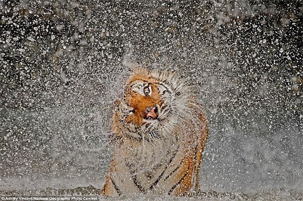Фото Ешлі Вінсент. Індокитайська тигриця Бусаба, що мешкає у відкритому зоопарку в Таїланді, насолоджується власним басейном.