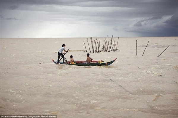 Закарі Бако захопили діти, що боролися з вітром перед бурею на великому озері в Камбоджі