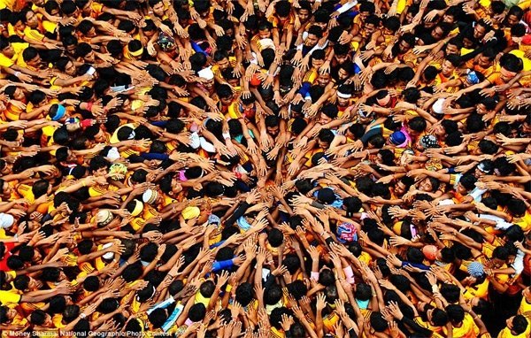 Моне Шарма зняла, як гравці збираються разом, щоб зробити піраміду з людських рук аміди, аби зловити і потім розбити глиняний горщик. Його розбивають на удачу