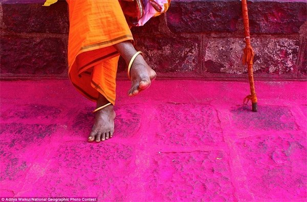 Адітья Вайкул зняла це фото у древньому храмі в Махараштрі, Індія. Підлога храму порожевіла через фарбу, яку розсипають віряни і туристи