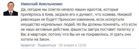 У більш ранніх публікаціях згадується побиття нардепа від "Свободи" Андрія Іллєнка, екс-глави МВС Юрія Луценка та ще "пари особливо розумних", яких "приробили, і будемо продовжувати".
