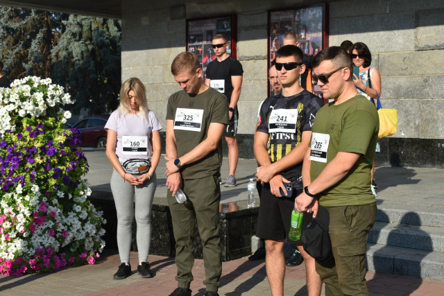 Учасники марафону вшанували пам’ять загиблих загальнонаціональною хвилиною мовчання, склали спільну молитву та виконали Державний Гімн України.Як зазначив священник Свято Троїцького-Собору Української Православної Церкви, живим – увага і піклування, а полеглим – молитва і пам'ять.
