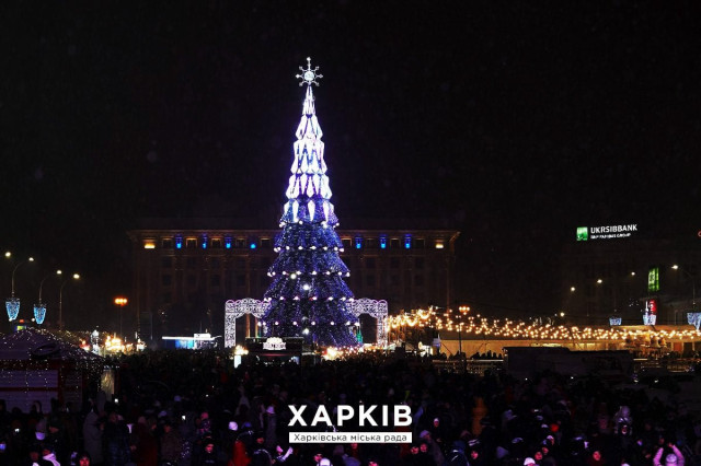 Як майже у всіх містах України, тут святкове дерево – штучне. Але не менш красиве. Цього року ялинку, яка височіє на 22 метри, оформили у європейському стилі, витративши на нові іграшки та гірлянди близько двох мільйонів гривень. А ілюмінація, яку використовували у попередні роки, тепер прикрашає інші новорічні локації Запоріжжя.Харків