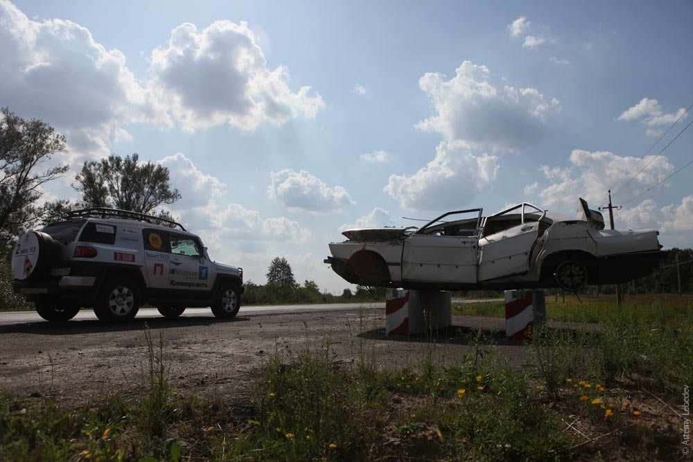 У Живому Журналі пан Лебедєв розмістив фото власного позашляховика під назвою «Кукусик» на фоні розбитої машини. Світлина, як можна легко здогадатися, зроблена на відрізку автомагістралі Рівне-Луцьк у Ківерцівському районі Волині.