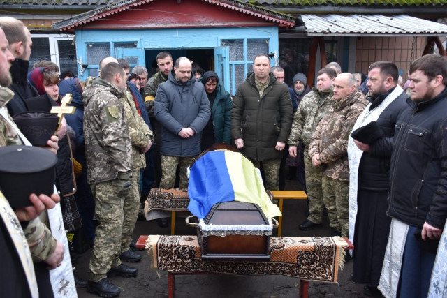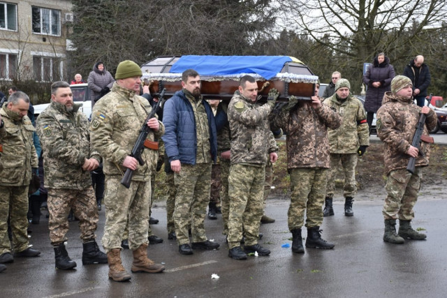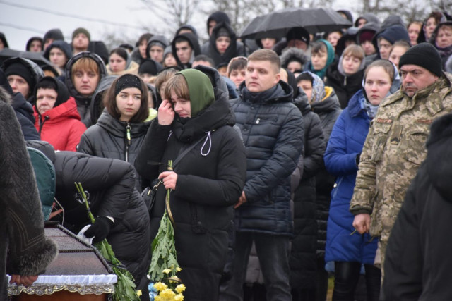 Віддати останню шану Герою із жовто-блакитними квітами та вінками з жалобними стрічками прийшли рідні, друзі, представники влади та жителі громади. Зустріли воїна живим коридором напередодні.
