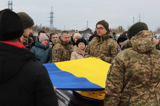 З усіма військовими почестями загиблого захисника України Іллю Чолака поховали на Алеї Слави міського кладовища.