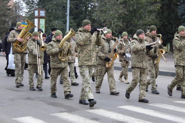 Від рідного дому траурний кортеж вирушив у центр міста, де біля пам’ятного знака Борцям за волю та незалежність України відбулася громадська панахида.