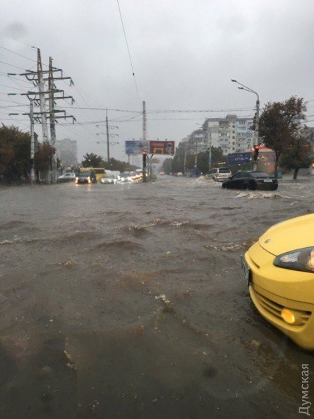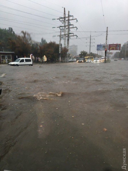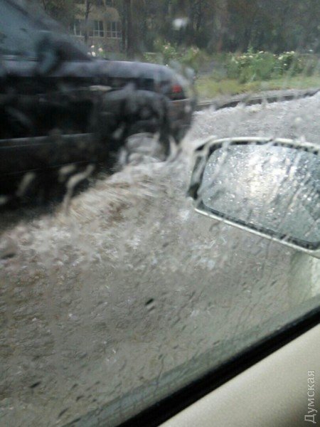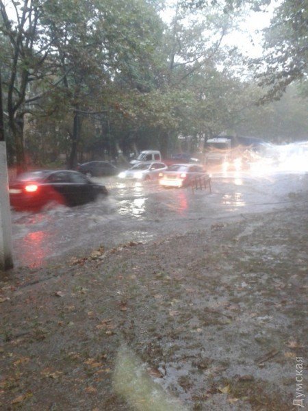 Тим часом видання «Думская» повідомляє, що сильна злива затопила в Одесі багато вулиць. Міські дороги перетворилися на річки. Рівень води на деяких вулицях сягає 50-70 см. Затоплені машини, розташовані на стоянці по вулиці Вільямса.