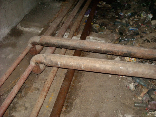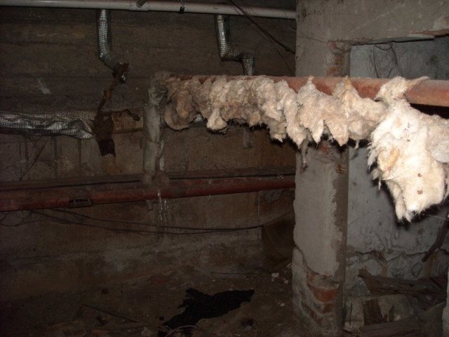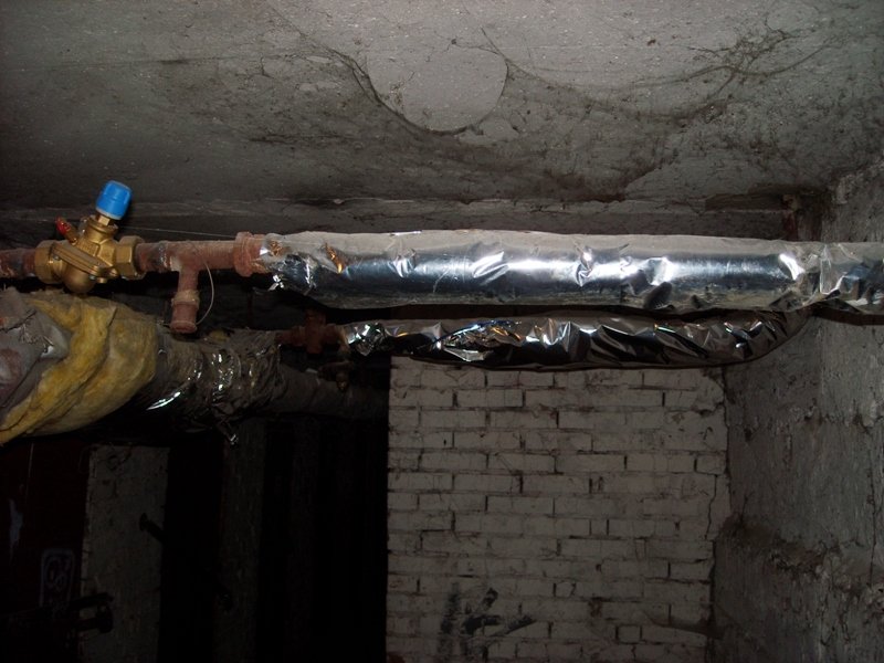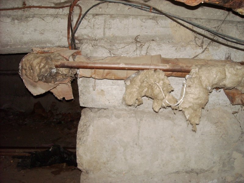 На фото: на трубах, по яких тече гаряча вода, немає теплоізоляції:
