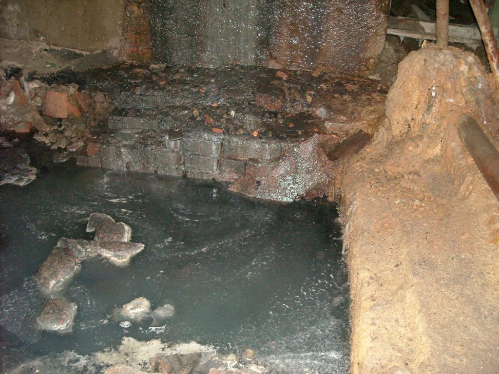 На фото: невеличке озерце із каналізаційних стоків у підвалі будинку на Соборності, 37