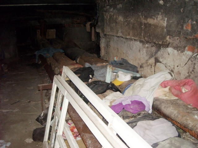 На фото: на трубах у підвалі на Молоді, 13а та 17а гріються безхатьки