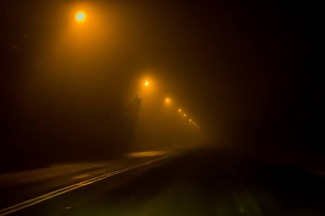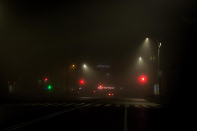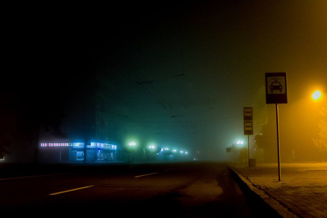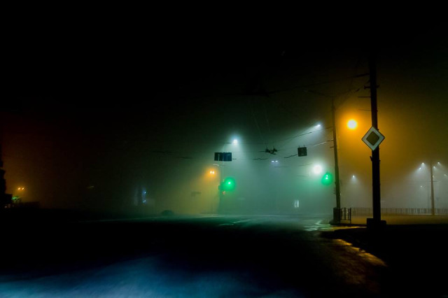 Фото огорнутого туманом міста у світлі нічних ліхтарів розмістив фотограф Данило Гетьман на своїй сторінці у Фейсбуці.