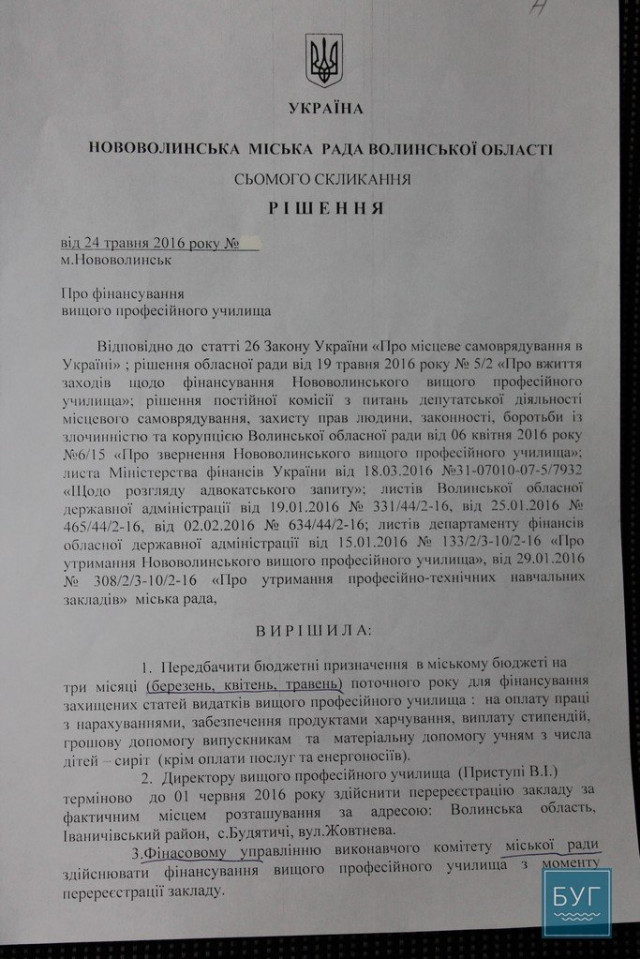 Депутати Нововолинської міськради проголосували на сесії 24-го травня за те, щоб фінансувати Нововолинське вище професійне училище №1.