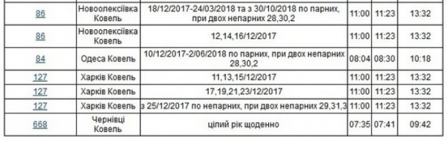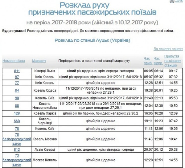 На сайті "Укрзалізниці" з'явився оновлений графік руху потягів зі станції "Луцьк" на 2017-2018 роки.