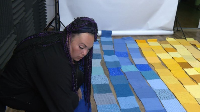 «До нашої організації входять передусім внутрішньо переміщені українці, і теплий прапор, кожен шматочок – це чиясь доля, це чиїсь думки, які вкладені у цей витвір», – каже жінка.