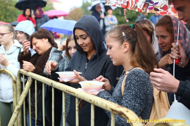 Нагадаємо, по 500 порцій безкоштовних вареників та смачного борщу, який готували для лучан ведучі шоу «Ранок нової Волині», роздали гостям «Фестивалю національної кухні», який тривав недільного дня в Парку культури та відпочинку імені Лесі Українки. Святкове дійство, яке організувала ГО “Volfest”, стало логічним продовженням минулорічного «свята вареника», який також відбувався у парку. Відтак, цьогоріч свято вирішили урізноманітнити не лише новим меню, але й культурною програмою, а також безліччю призів від спонсорів.