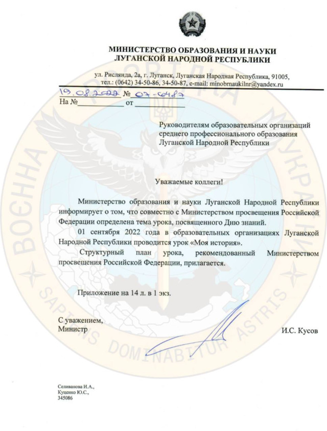 Окупанти з «лнр» підготували псевдоісторичну методичку до 1 вересня
