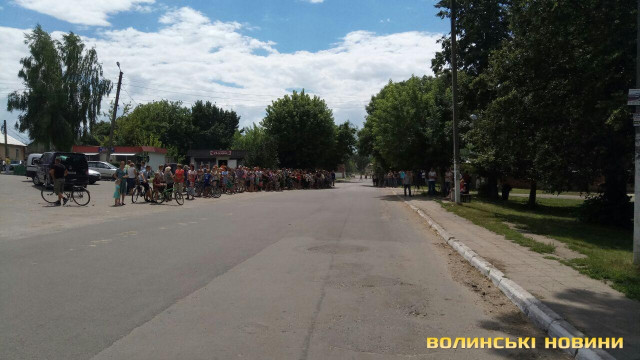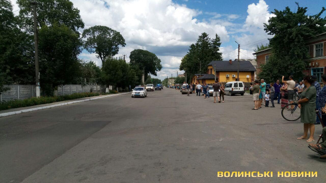 Люди стоять уздовж дороги, зустрічаючи поважного гостя.