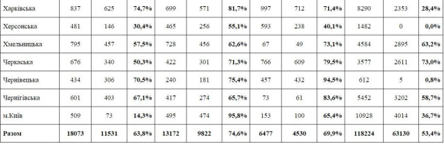 Загалом в Україні вже опалюється 63,8% шкіл, 74,6% дошкільних навчальних закладів, 69,9% лікувально-профілактичних закладів та 53,4% житлового фонду.