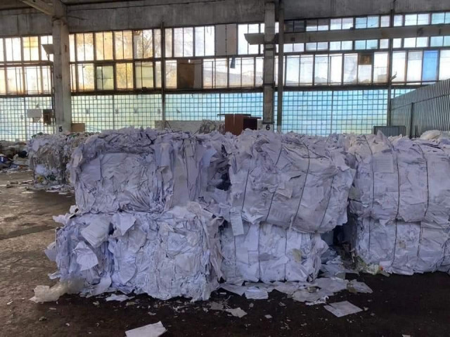 Він поширив фото, на якому видно, як стоси перев’язаних бюлетенів з «5 запитаннями» від президента України Володимира Зеленського лежать у приміщенні, схожому на склад для утилізації сміття.