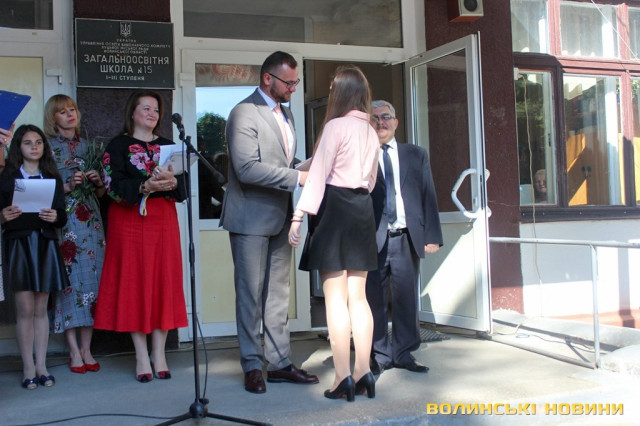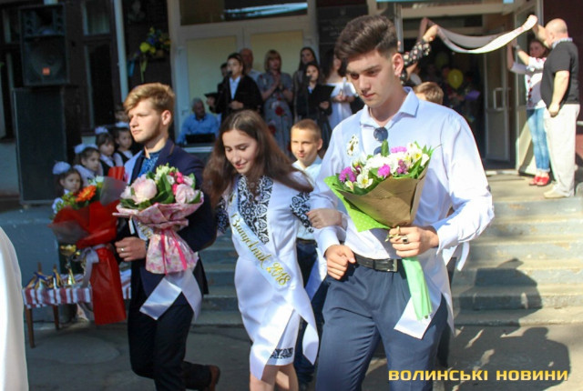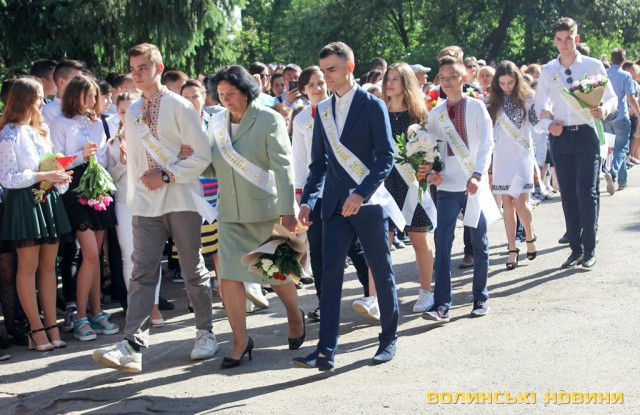 Ми, як міська влада, намагаємося в це зробити і свій внесок – покращуючи матеріально-технічний стан шкіл міста. Зокрема у цій школі торік капітально відремонтували дах, а цього року вже добігає до завершення ремонт актової зали», - сказав Ігор Поліщук та додав, що луцькі школярі є переможцями на всеукраїнських та міжнародних олімпіадах, а школи входять у сотню кращих в Україні, що свідчить про високий рівень освіти.А от випускник Олександр переконаний, що не залежно від того, який фах обере сьогоднішній школяр у подальшому, головне лишатися гідним сином своєї Батьківщини.