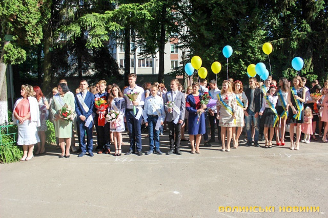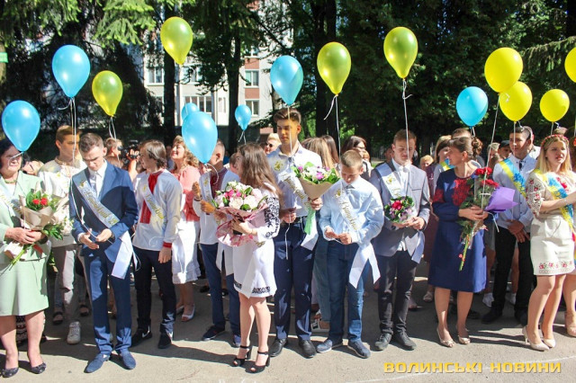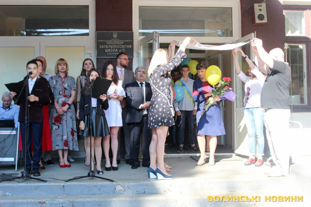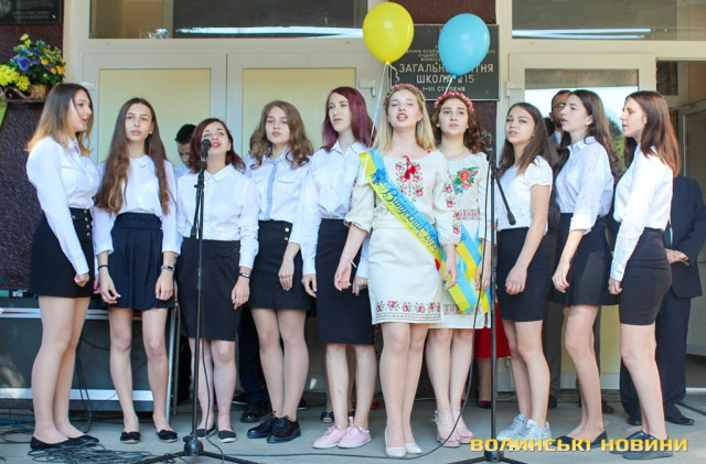 Для 26 випускників луцької ЗОШ №15 востаннє задзвонив останній дзвінок. Урочистий захід був наповнений теплими словами привітань, квітами та гарними вбраннями школярів, більшість із яких одягнули вишиванки.