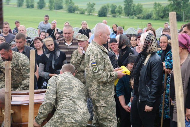 У рідному селі зустрічали воїна живим коридором, навколішки, встеляючи дорогу квітами. Віддали останню шану Герою, який поклав життя за Україну, сотні людей: рідні, близькі, знайомі, побратими, військовослужбовці та жителі громади.