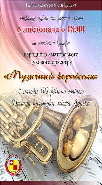 Лучан та гостей міста запрошують на концерт «Музичний вернісаж» народного аматорського духового оркестру Палацу культури міста Луцька.