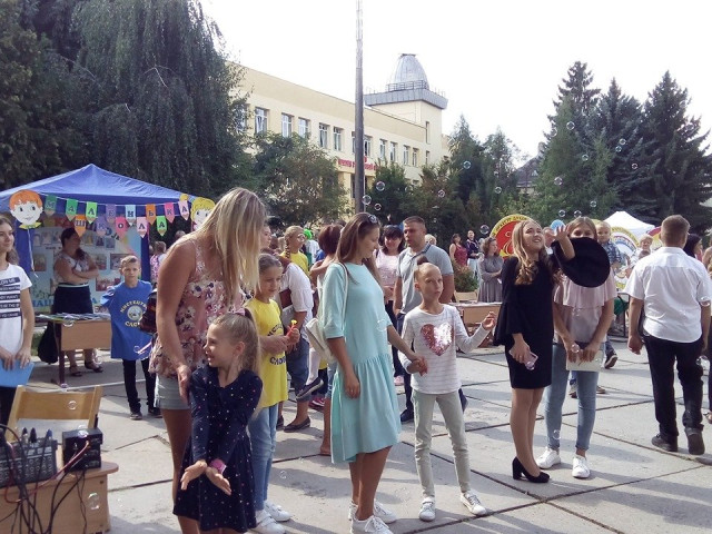 Нагородою юним артистам були голосні оплески, вигуки захвату гостей свята. Організатори подбали про оригінальні фотозони, де дітей розважали кумедні аніматори Ангел, Король, Пес і клоуни, учасники Зразкового театрального колективу «Чудодії» (керівник Віктор Луговський). Школярі й батьки взяли участь в майстер-класах, веселих забавах і флешмобах.А головне – юні лучани поспілкувалися з керівниками гуртків, обмінялися контактами, і багато з них відразу записалися на навчання за напрямами, які найбільше припали до душі.Наприкінці заходу всіх учасників чекали яскраві сюрпризи. «Родзинкою» свята стала фігура «Сонце», яку утворили артисти, педагоги, батьки і новачки, продемонструвавши спільне бажання щастя і тепла кожній українській родині.Завершилося дійство спільним запальним танцювальним флешмобом під звуки ритмічної музики та піснею про Україну.Палац учнівської молоді знову приймає в свої обійми талановиту молодь міста, допомагає школярам відкривати і розвивати свої таланти. Цього дня дружна родина ПУМа вкотре поповнилася великою командою новачків, з якими розпочнеться навчальний рік у привітних залах, аудиторіях закладу. Запрошуємо долучитися до роботи гуртків і творчих колективів, адже набір у групи ще триває…Фото події – вихованців Дитячо-юнацької телестудії під керівництвом Ольги ШкідиниФото флешмобу «Сонце» – Сергія Мінаєва