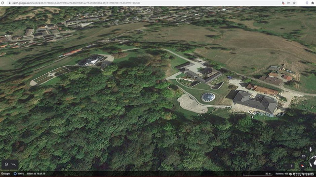 У XIX столітті Зеелах був літньою резиденцією відомого російського дипломата, таємного радника Михайла Хрептовича. Але те, що тут сьогодні, аристократові навіть не снилося. Нові господарі з Казахстану, відбудувавши історичну віллу, розбили на території ландшафтний парк із фонтанами, а під ним – розкішну спа-зону площею близько тисячі квадратних метрів. Скляний купол над 25-метровим басейном видно навіть на знімках із космосу.Територія маєтку Зеелах у Баден-Бадені, супутниковий знімок. Ліворуч – історичний будинок дипломата Хрептовича та сквер із фонтаном. Праворуч – сучасний житловий комплекс та ландшафтний парк, під яким розташовано спа-зону зі скляним куполом