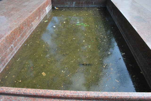 У плачевному стані – і басейн, розташований перед пам’ятником поетесі. Занедбаність просто вражає.