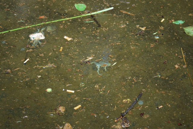 У міні-водоймі – недопалки, гілляччя, поліетиленові пляшки, упаковки з-під цигарок та інше.