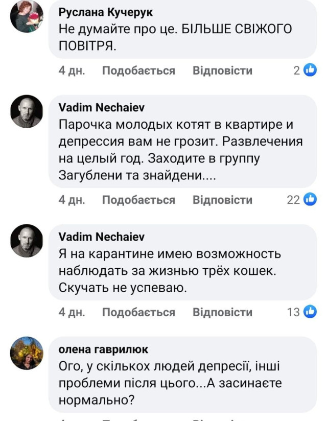 Разом із тим, користувач Олекса Зодчий радить звертатись до психотерапевта, а «рахунок за лікування виставляти журналістам, які щодня поширюють статистику захворюваності».