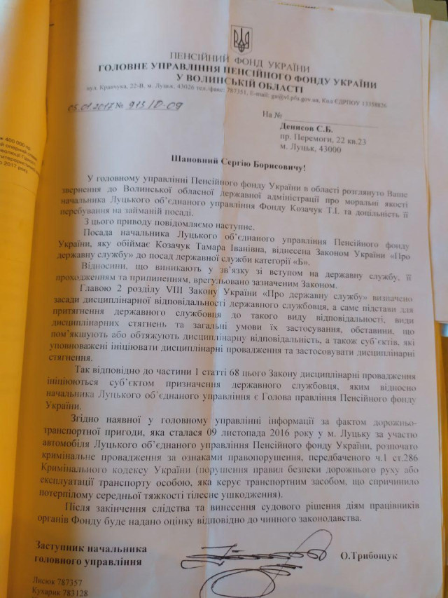 Так, працівники пенсійного фонду жодного разу не поцікавилися здоров’ям дитини, яку у 2016-му році збив на службовому авто їхній водій. Натомість, ні сам обвинувачуваний, якому вироком Луцького міськрайонного суду присудили покарання у вигляді обмеження волі терміном на півтора року, ні управління пенсійного фонду не компенсували батькам постраждалої дитини коштів на лікування, не виплатили моральної компенсації та навіть на попросили вибачення.
