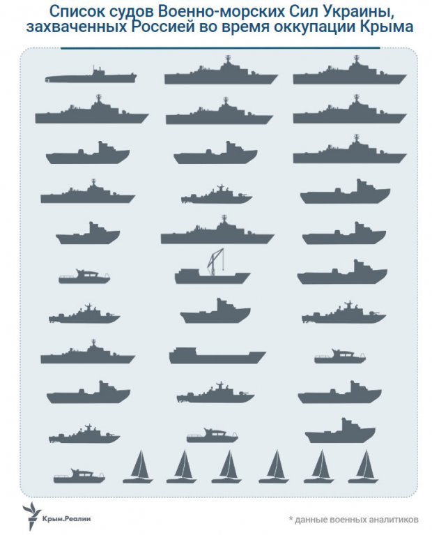 Перелік військових кораблів з окупованого Криму, які Росія готова передати Україні: