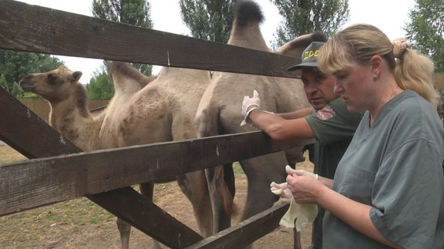 У верблюдів, яких у Луцьку тепер пара, взяли проби шкіри для аналізу на наявність шкідників.