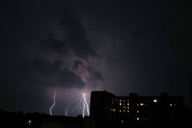 Перші весняні блискавиці, грім та злива стали об'єктом особливого зацікавлення явищами природи лучанами минулої ночі.