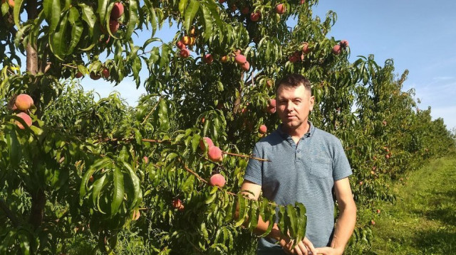 Волинський садівник Сергій Шевчук збирає врожай на персиковій плантації. Триденну виручку планує переказати у фонд Сергія Притули.