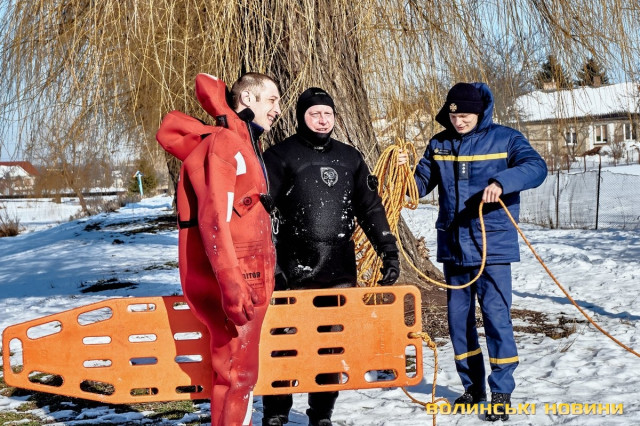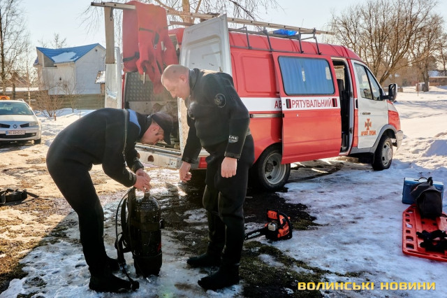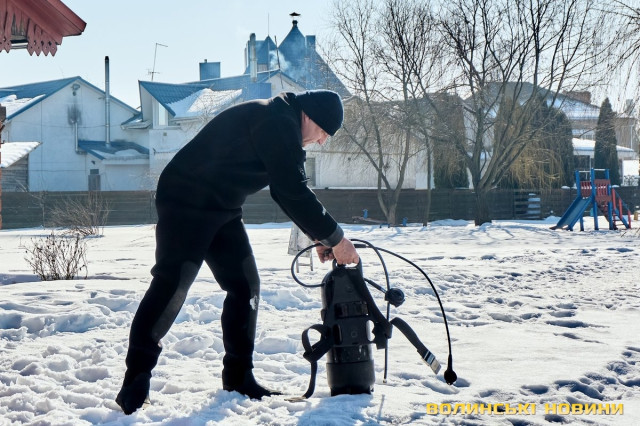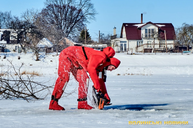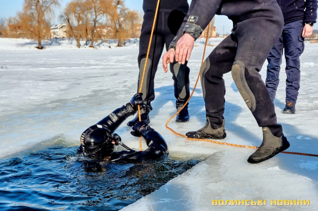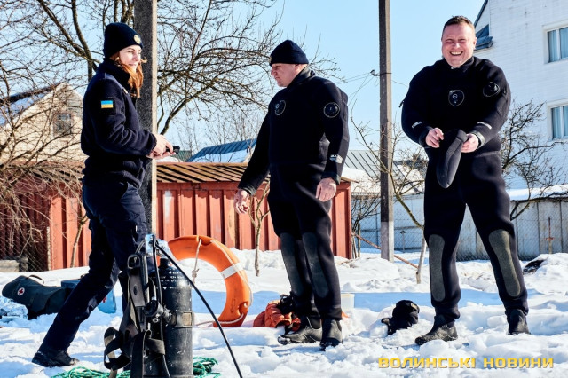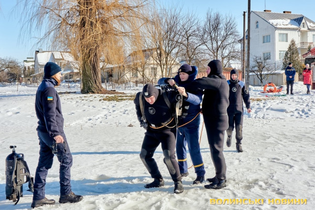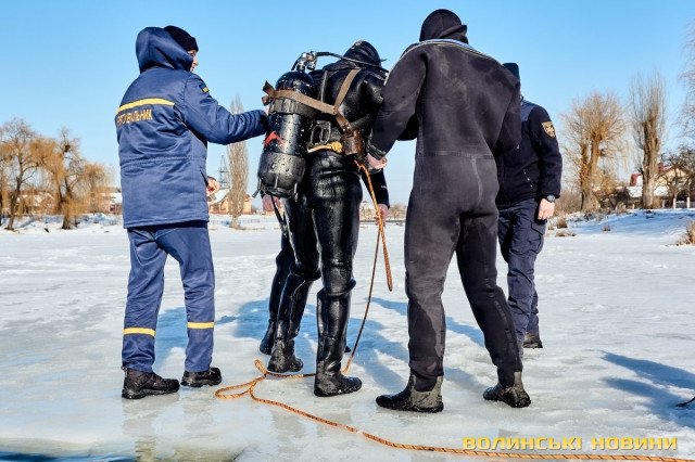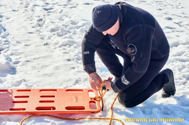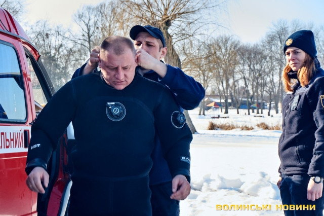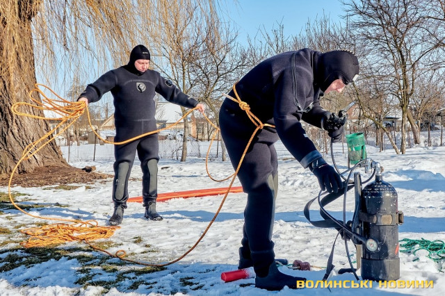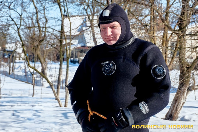 Волинські водолази мають допуски до роботи на глибині до 20 метрів, адже на Волині немає водойм, які мають більшу глибину. Зазвичай це максимум 10-12 метрів. Але і це – величезне навантаження на організм і для роботи треба мати хорошу фізичну форму.Цього разу водолази відпрацьовували занурення під лід. Для цього вирізали спеціальну ополонку, куди і має зануритись службовець у гідрокостюмі. Сам костюм пристосований до роботи в таких умовах і витримує низькі температури. Але ще є спорядження, яке важить чимало: близько 35 кілограмів. Це і балон з повітрям, і вантаж для занурення.