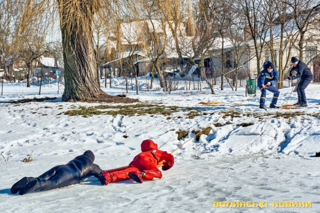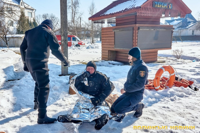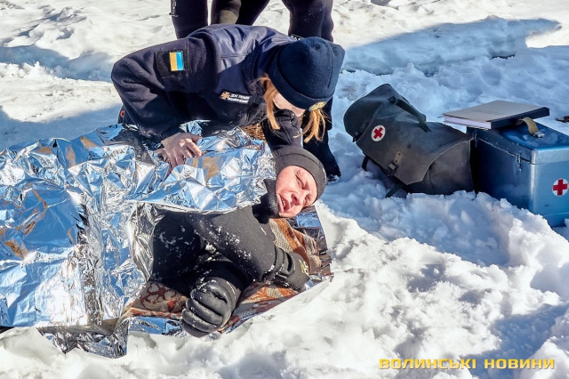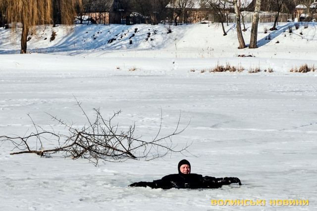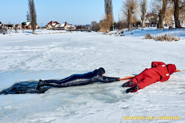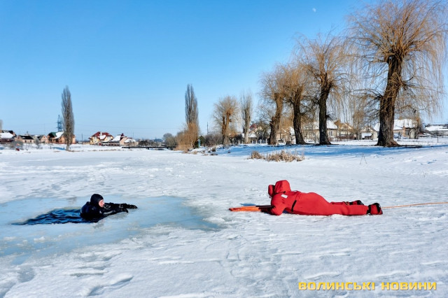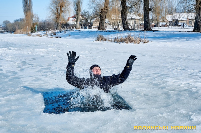 Разом із зануренням відпрацьовують волинські рятувальники й алгоритм порятунку з води. Вони зазначають: найважливіші для людини, яка впала у воду, – перші 10 хвилин. Особливо взимку. Все, звичайно, залежить від одягу, від того, як на людину впливає холод, від її фізичного стану. Та через 10 хвилин, якщо не зорієнтуватися і не знати, як врятуватися, – людина піде на дно.