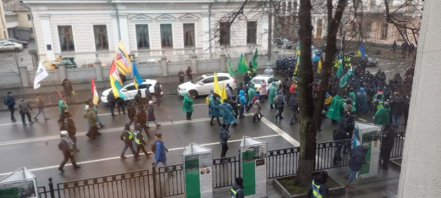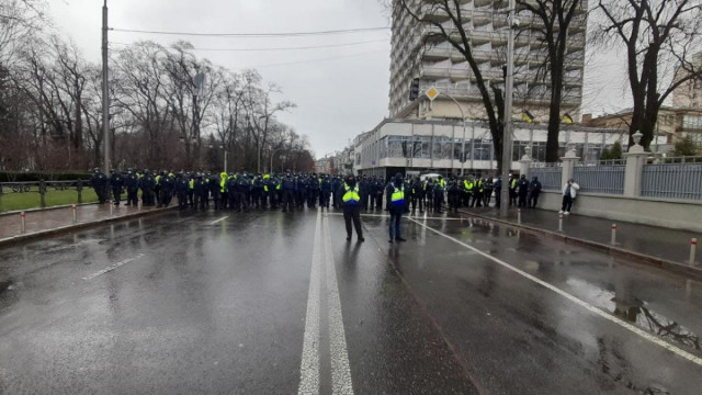 Пікетувальників заблоковано в районі парламенту, оскільки інша колона правоохоронців в кілька рядів перекрила їм вихід біля готелю «Київ».