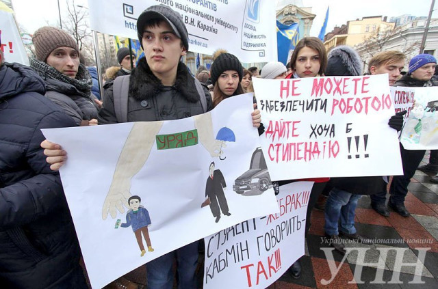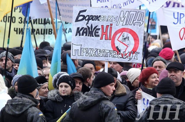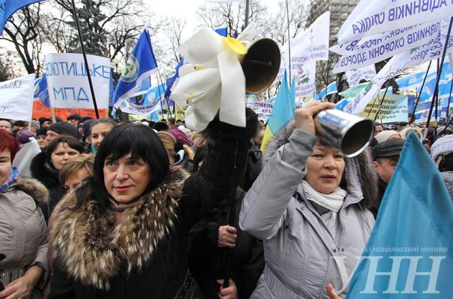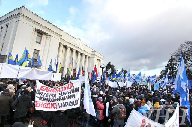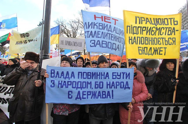 Протестувальники вийшли з різними вимогами: проти скорочення соцвидатків, приватизації об'єктів держвласності, "банківського свавілля".
